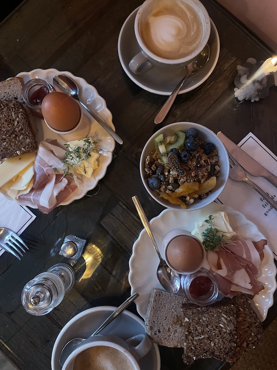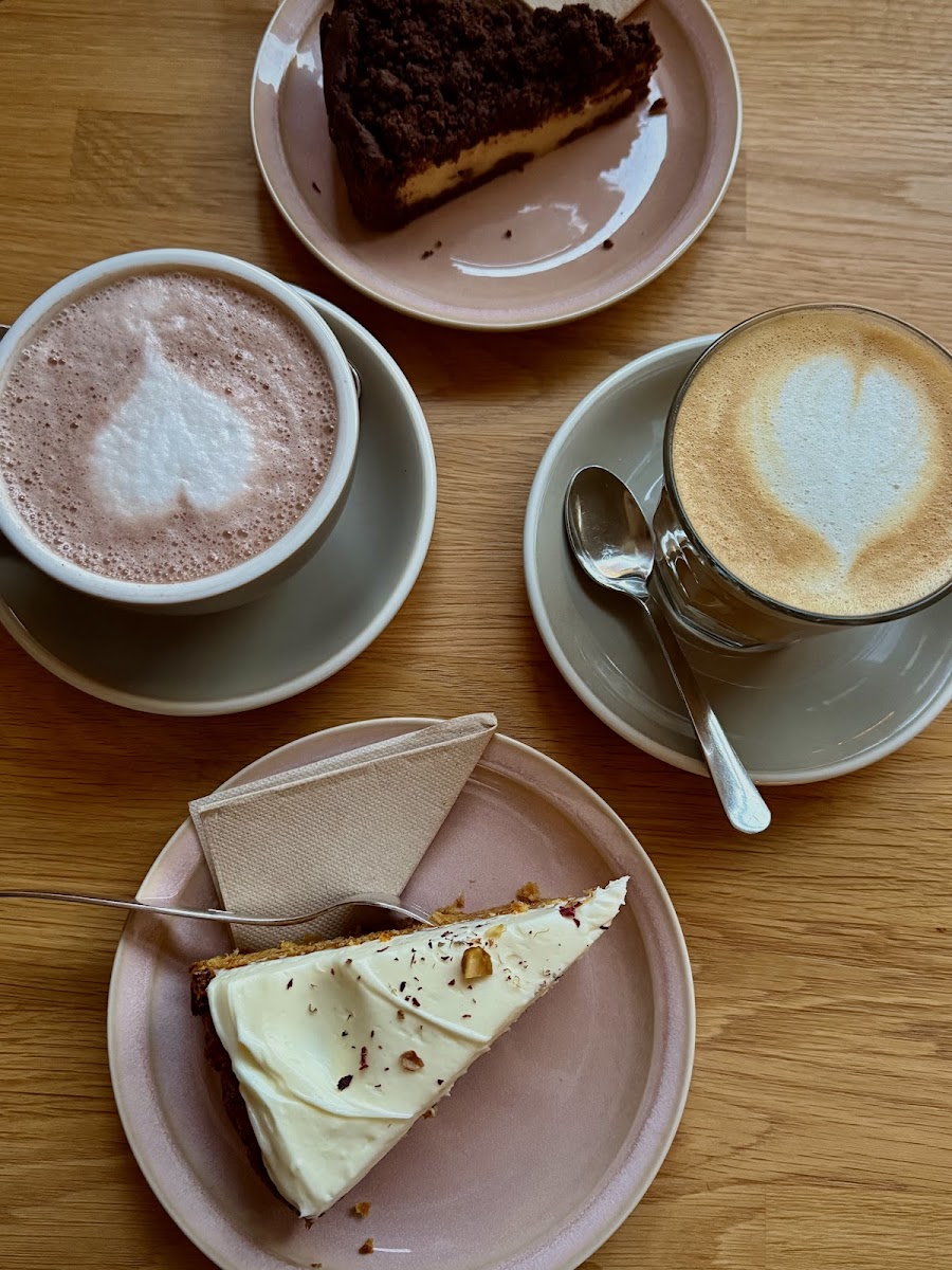 Breakfast is a highlight and worth arriving a bit early for, especially to enjoy options like the “Kleines Käsefrühstück” — a light cheese platter — paired with a well-made cappuccino. The café also serves up fresh pastries and cakes, including a particularly recommended chocolate cheesecake, alongside fresh juices that appeal to those looking for gluten-free alternatives or simply something fresh and vibrant in the morning. It’s a good spot for anyone who appreciates quality ingredients served simply but thoughtfully.